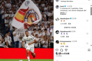 皇馬新援阿諾德也在社媒曬出本場照片,配文寫道:“3場比賽3場勝利,這是好的開始,讓我們在國際比賽日之后再見!”