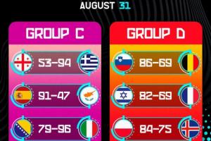 體育資訊09月01日訊 男籃歐錦賽當(dāng)?shù)貢r間8月31日的6場小組賽全部結(jié)束,詳細賽果如下: