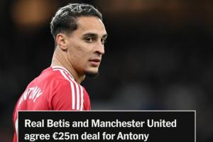 媒體表示,兩家俱樂部同意的轉(zhuǎn)會費(fèi)為2500萬歐元,其中包含300萬歐元的潛在獎金。該協(xié)議還包含一項轉(zhuǎn)售條款,曼聯(lián)將獲得貝蒂斯未來轉(zhuǎn)會利潤的50%。