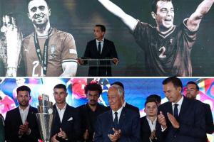 儀式由葡萄牙足協(xié)主席普羅恩薩主持,兩位已故國(guó)腳的家人——科斯塔的妻兒、若塔的父母與妻子,以及國(guó)家隊(duì)隊(duì)友、主帥馬丁內(nèi)斯、波爾圖俱樂(lè)部主席維拉斯-博阿斯等人共同見證。