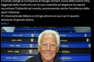 體育資訊9月4日訊 意大利時裝設計師、奢侈品牌阿瑪尼創(chuàng)始人喬治-阿瑪尼在今日離世,享年91歲,國米官方通過社交媒體進行了悼念。