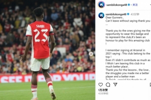 體育資訊9月5日訊 25歲的比利時中場洛孔加已經官宣加盟漢堡,他也在今日通過社媒發(fā)文告別阿森納: