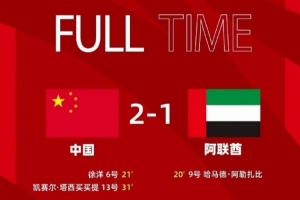 徐洋、凱賽爾建功,中國隊2:1逆轉(zhuǎn)戰(zhàn)勝阿聯(lián)酋隊取得開門紅!