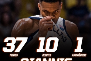 希臘球星字母哥狀態(tài)炸裂,他全場出戰(zhàn)29分鐘,23中18,三分2中0,罰球2中1,狂砍全場最高的37分,外加10籃板1助攻1蓋帽。