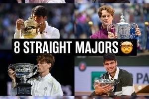 2003年出生的阿爾卡拉斯和2001年出生的辛納包攬了過去兩年的四大滿貫,二人各拿下4個(gè)冠軍。