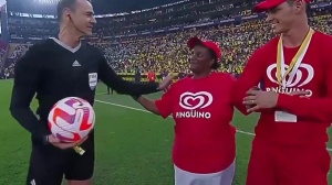 世預賽南美區(qū)厄瓜多爾1-0阿根廷,賽前凱塞多媽媽為比賽送球
