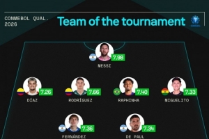 體育資訊9月10日訊 南美世預(yù)賽最后一輪比賽戰(zhàn)罷,Sofascore根據(jù)球員本屆南美世預(yù)賽的場(chǎng)均評(píng)分列出最佳陣容,梅西領(lǐng)銜,拉菲尼亞、J羅、迪亞斯、恩佐在列。