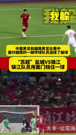 原視頻中,一個畫面是吳曦在對陣越南時的“躲球”鏡頭,另一個是鎮(zhèn)江球員用面門擋球的畫面。