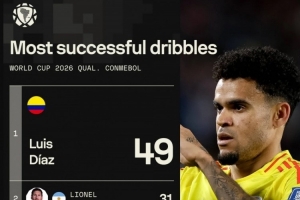體育資訊9月11日訊 南美世預(yù)賽戰(zhàn)罷,Sofascore統(tǒng)計了球員在本屆世預(yù)賽中的成功過人次數(shù),并列出榜單,迪亞斯49次居首,梅西31次第二。
