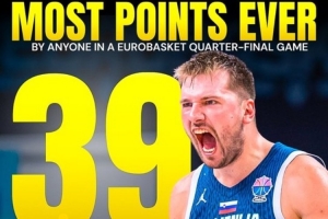 根據數據統(tǒng)計,東契奇此役39分,這是歐錦賽1/4決賽歷史單個球員的得分紀錄。