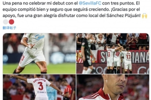 阿茲皮利奎塔:很遺憾未能和塞維利亞以三分慶祝我的首秀。球隊(duì)的表現(xiàn)不錯(cuò),并且肯定會(huì)繼續(xù)進(jìn)步。感謝大家的支持,在主場(chǎng)皮斯胡安球場(chǎng)真的是太開心了。