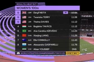 體育資訊9月13日訊 2025年東京田徑世錦賽女子100米預(yù)賽,梁小靜在第五組第8道登場,最終梁小靜11秒29小組第六無緣半決賽。