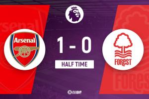 半場(chǎng)結(jié)束,阿森納暫1-0諾丁漢森林。