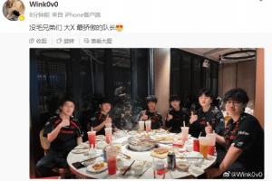 體育資訊9月13日訊?2025LPL第三賽段季后賽JDG 3-1戰(zhàn)勝WBG,賽后輔助Wink分享隊伍聚餐照并配文:"沒毛兄弟們,大X,最驕傲的隊長。"