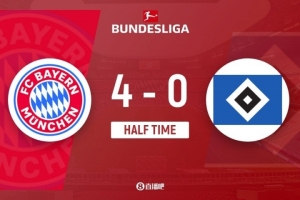 上半場比賽結(jié)束,拜仁慕尼黑4-0漢堡。