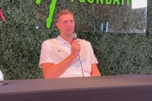 體育資訊9月14日訊 今日獨(dú)行俠名宿諾維茨基的基金會(huì)舉辦了第七屆名人網(wǎng)球賽,諾維茨基在新聞發(fā)布會(huì)上談到了獨(dú)行俠狀元弗拉格。