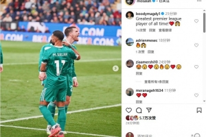 薩拉赫沒有為照片進行任何配文,但不到半小時已獲得5.7萬次點贊,有球迷也在評論區(qū)盛贊他為英超歷史最佳。