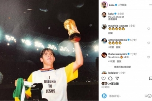卡卡2002年隨巴西隊問鼎世界杯,他在社交媒體上曬出自己舉起大力神杯的照片,配文:“23年前?!?/p> 足壇歷史上的今天