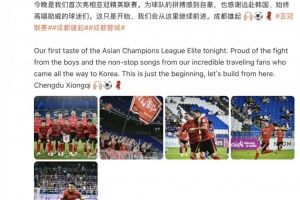 在蓉城隊史首場亞冠正賽惜敗之后,周定洋在社媒曬出現(xiàn)場照片并配文寫道:“今晚是我們首次亮相亞冠精英聯(lián)賽。為球隊的拼搏感到自豪,也感謝遠赴韓國、始終高唱助威的球迷們。這只是開始,我們會從這里繼續(xù)前進。成都雄起 ????????”