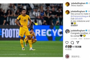 此役喬布-貝林厄姆替補出場,上演歐冠首秀,他在社交媒體上曬出比賽照片,并寫道:“很自豪在多特上演歐冠首秀,一個新的里程碑,也是學習更多的開始?!?/p>