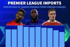 以下為近10年英超俱樂部從其他聯(lián)賽引援比例情況:
