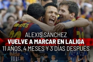 《馬卡報(bào)》統(tǒng)計(jì)表明,桑切斯時(shí)隔11年4個(gè)月零3天再一次在西甲破門,他上一次在西甲進(jìn)球是2013-14賽季代表巴薩攻破馬競球門。