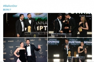 體育資訊9月23日訊 2025年金球獎頒獎典禮在法國巴黎的沙特萊劇院進行,布馮作為嘉賓頒發(fā)了雅辛獎。