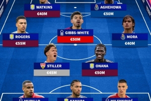 中場:羅杰斯(維拉)、斯蒂勒(斯圖加特)、吉布斯-懷特(諾丁漢森林)、奧納納(維拉)、莫拉(波爾圖)