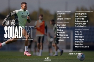 體育資訊9月26日訊 北京時(shí)間明天晚上22點(diǎn)15分,皇馬將在西甲第7輪比賽中客場(chǎng)對(duì)陣馬競,皇馬公布了此役的球員名單,呂迪格、阿諾德、門迪繼續(xù)缺席。