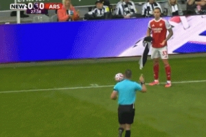 阿森納客戰(zhàn)紐卡第28分鐘,阿森納獲得前場左路邊線球,卡拉菲奧里從場邊撿了毛巾準(zhǔn)備擦球,這位邊后衛(wèi)想擲出大力邊線球。不過當(dāng)值主裁吉萊特不允許這么做,他從卡拉菲奧里手上拿走毛巾,并扔至場外。