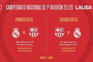 國家德比將于10月和明年5月進行,皇馬先主場,具體時間待公布。
