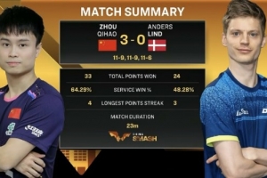 體育資訊9月30日訊 WTT中國大滿貫?zāi)袉?/16決賽,國乒選手周啟豪3-0戰(zhàn)勝林德,晉級16強(qiáng)!