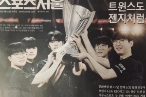 體育資訊9月30日訊 LCK總決賽GEN戰(zhàn)勝HLE奪得冠軍,GEN全員舉起冠軍獎(jiǎng)杯的照片登上了“首爾體育封面”;