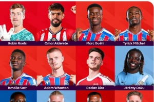 中場:薩爾(水晶宮)、沃頓(水晶宮)、賴斯(阿森納)、多庫(曼城)