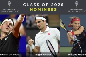 體育資訊10月1日訊 官方消息,費(fèi)德勒、德?tīng)柌ㄌ亓_和庫(kù)茲涅佐娃入圍2026年網(wǎng)球名人堂候選名單。