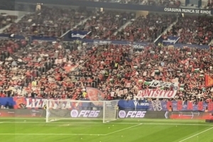 此役奧薩蘇納球迷組織Indar Gorri向球場內(nèi)投擲網(wǎng)球,導(dǎo)致比賽中斷,并展示抗議以色列的橫幅。