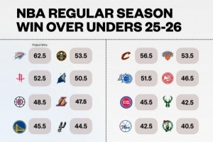 體育資訊10月8日訊 博彩公司BetMGM給出了新賽季NBA各隊(duì)常規(guī)賽的勝場(chǎng)盤口指數(shù),其中雷霆的勝場(chǎng)盤口指數(shù)為62.5,是所有球隊(duì)中最高的。這可以大致理解為博彩公司認(rèn)為雷霆的勝場(chǎng)數(shù)最有可能就是62、63場(chǎng)這幾個(gè)接近的數(shù)字。