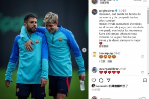 體育資訊10月8日訊 西班牙邊衛(wèi)阿爾巴將在本賽季結(jié)束后退役,前巴薩隊(duì)友羅貝托社媒發(fā)文祝福。