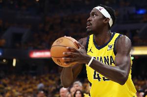 步行者球員西亞卡姆此役在攻防兩端依舊展現(xiàn)出不俗狀態(tài),進(jìn)攻端三分手感火熱,拼搶也是相當(dāng)積極。