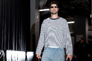 楊瀚森白色連帽衫套裝清爽干練,霍勒迪也是棕色套裝,阿夫迪亞居家風(fēng)搭配黑超,格蘭特上衣印有宮崎駿動畫《千與千尋》。