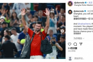 體育資訊10月11日訊 在上海大師賽止步半決賽后,德約科維奇通過社交媒體感謝了上海和球迷。