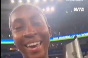 體育資訊10月12日訊 在奪得武漢網(wǎng)球公開賽冠軍后,高芙錄制視頻,感謝中國球迷。