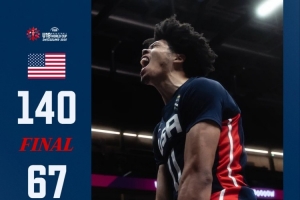 體育資訊7月3日訊 U19男籃世界杯,美國隊以140-67狂勝約旦隊,輕松晉級八強。