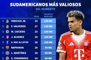 體育資訊10月18日訊 德國轉(zhuǎn)會(huì)市場更新了部分球員的身價(jià),并列出南美球員德轉(zhuǎn)身價(jià)排名,維尼修斯、巴爾韋德排名前兩位。