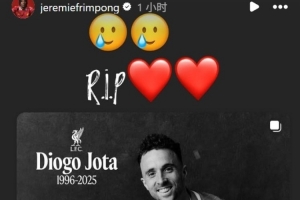 今夏剛剛加盟利物浦的新援弗林蓬,通過社媒轉(zhuǎn)發(fā)了利物浦官方悼念若塔的動態(tài),并配文:“安息吧”。