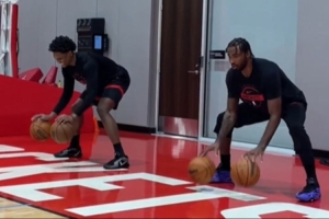 體育資訊10月19日訊 火箭官方社媒更新,分享阿門-湯普森與塔里-伊森一同進行運球訓(xùn)練的視頻。