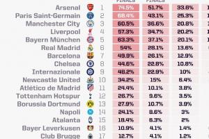 體育資訊10月21日訊 歐冠聯(lián)賽階段第三輪開賽在即,opta超級(jí)計(jì)算機(jī)更新了歐冠奪冠概率,其中阿森納位列榜首,巴黎、曼城分列二三。