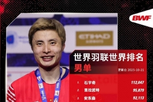 體育資訊10月21日訊 世界羽聯(lián)2025年底43周世界排名發(fā)布,國(guó)羽占據(jù)三個(gè)單項(xiàng)的榜首,分別是男單、女雙和混雙。