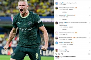 本場比賽哈蘭德破門,這已經(jīng)是他連續(xù)12場比賽取得進球。賽后哈蘭德在社媒曬出慶祝照片,配文寫道:“只不過又是普普通通上班的一天?!?/p>