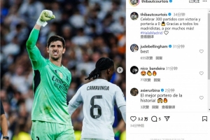 此役是庫(kù)爾圖瓦為皇馬出戰(zhàn)的第300場(chǎng)比賽,他在社交媒體上寫道:“以勝利和零封慶祝300場(chǎng)里程碑!感謝所有皇馬球迷,未來(lái)還有更多場(chǎng)比賽!”